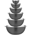 Versatilidad en la cocina: Nuestro juego de 6 tazones de acero inoxidable ofrece una gama completa de tamaños, desde 3/4 hasta 8 cuartos de galón, perfectos para mezclar, servir y preparar una variedad de alimentos. Con su diseño apilable y base plana estabilizadora, facilitan la manipulación y el vertido uniforme, mientras que el borde redondeado asegura un agarre cómodo durante el uso diario en la cocina.