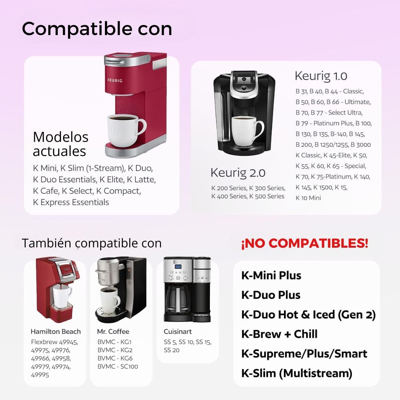 • COMPATIBLE CON VARIOS MODELOS: Nuestras tazas de café reutilizables filtro reutilizables son compatibles con una amplia gama de cafeteras Keurig, incluyendo K-Classic, K-Select, K-Duo y más. Disfruta de la versatilidad sin complicaciones.