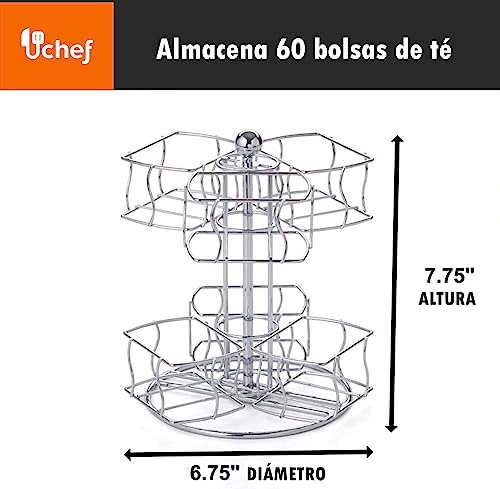 Organización Funcional: El organizador giratorio de U Chef exhibe con elegancia hasta 60 bolsas de té favoritas. Su plataforma gira suavemente 360 grados, facilitando encontrar rápidamente el té deseado. Ideal para mantener la cocina, dormitorio o cafetería de la oficina ordenados y accesibles, evitando la búsqueda en cajones y armarios.