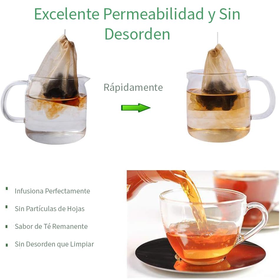 • MATERIAL DE CALIDAD: Las bolsas de té vacías para hojas sueltas están diseñadas para permitir una infusión perfecta sin que partículas de té se escapen. Disfruta de un té fuerte y puro sin residuos flotando, ideal para hojas sueltas y mezclas delicadas.
