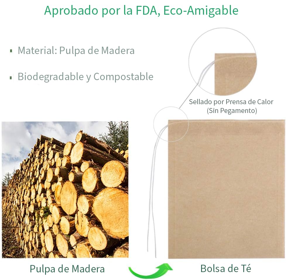 • MATERIAL BIODEGRADABLE Y SEGURO: Las bolsas para té con cordón están fabricadas con papel de pulpa de madera natural, selladas por prensa térmica sin pegamento ni olores. Completamente biodegradables y compostables para un consumo responsable y eco amigable.