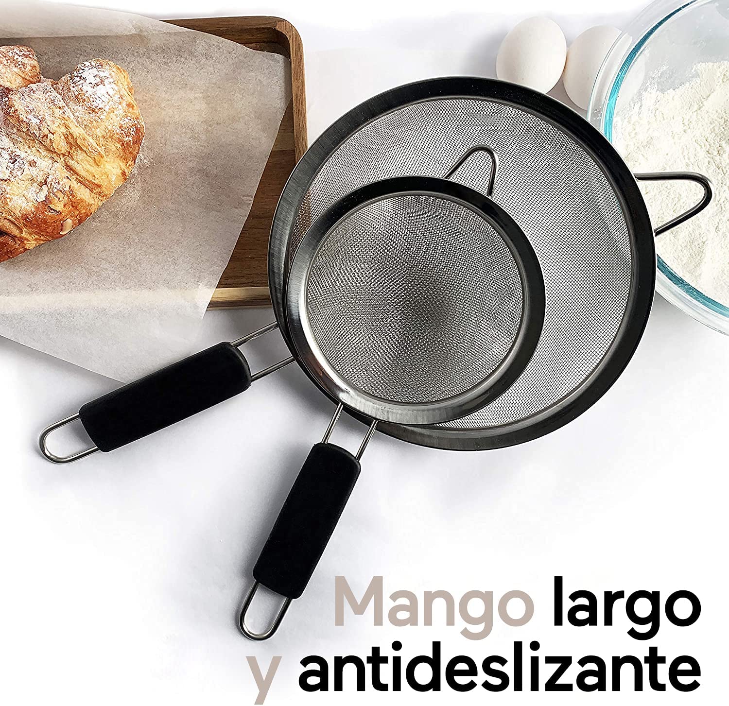 • ¡Cocina como experto! El juego de coladores de acero inoxidable de grado profesional es ideal para tener un rendimiento experto. Ya sea que busques colar o tamizar comida húmeda o seca, el set de escurridores permite filtrar impurezas y romper los grumos de alimentos secos, como especias, azúcar o harina; o bien, colar ingredientes húmedos como salsas y yogurt.