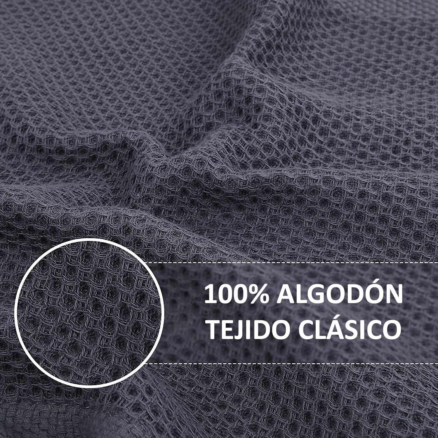 • Suavidad y absorción: Nuestras toallas de cocina están fabricadas al 100% en algodón, ofreciendo una sensación suave y cómoda. Con un diseño de paneles huecos que se vuelve más suave con cada lavado, estas toallas son ideales para secar utensilios de cocina, platos y sartenes sin riesgo de rayarlos. Son ligeras, transpirables y altamente absorbentes, proporcionando un rendimiento excepcional en todas las tareas de limpieza y secado en la cocina.