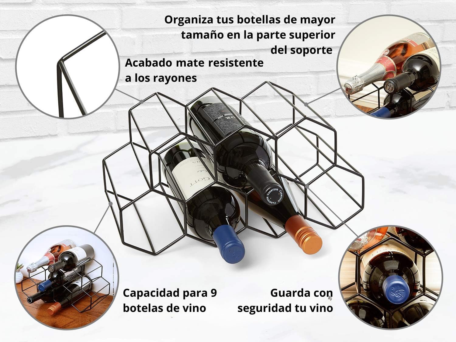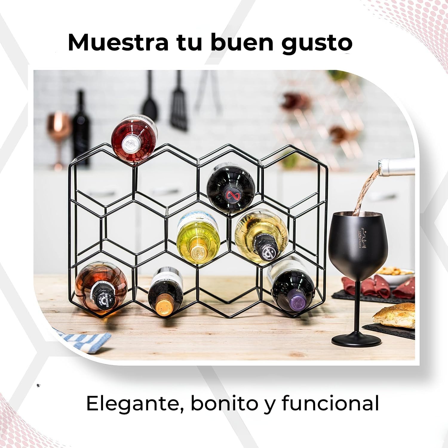 Diseño elegante y funcional: El soporte de vino negro de U Chef combina elegancia y utilidad con un diseño geométrico moderno. Fabricado con hierro de alta calidad y recubierto con un acabado en polvo resistente a la corrosión, garantiza durabilidad y protección. Con capacidad para 14 botellas, incluyendo botellas est‡ndar y grandes, es perfecto para el almacenamiento en armarios o como un estante de vino de mesa en cocina o sótano.