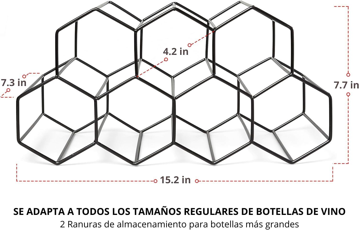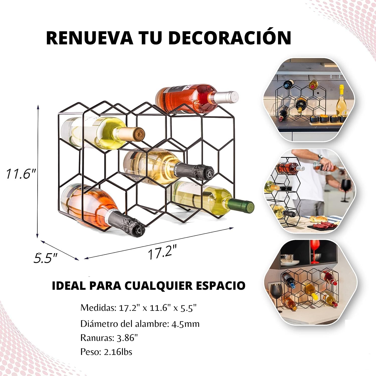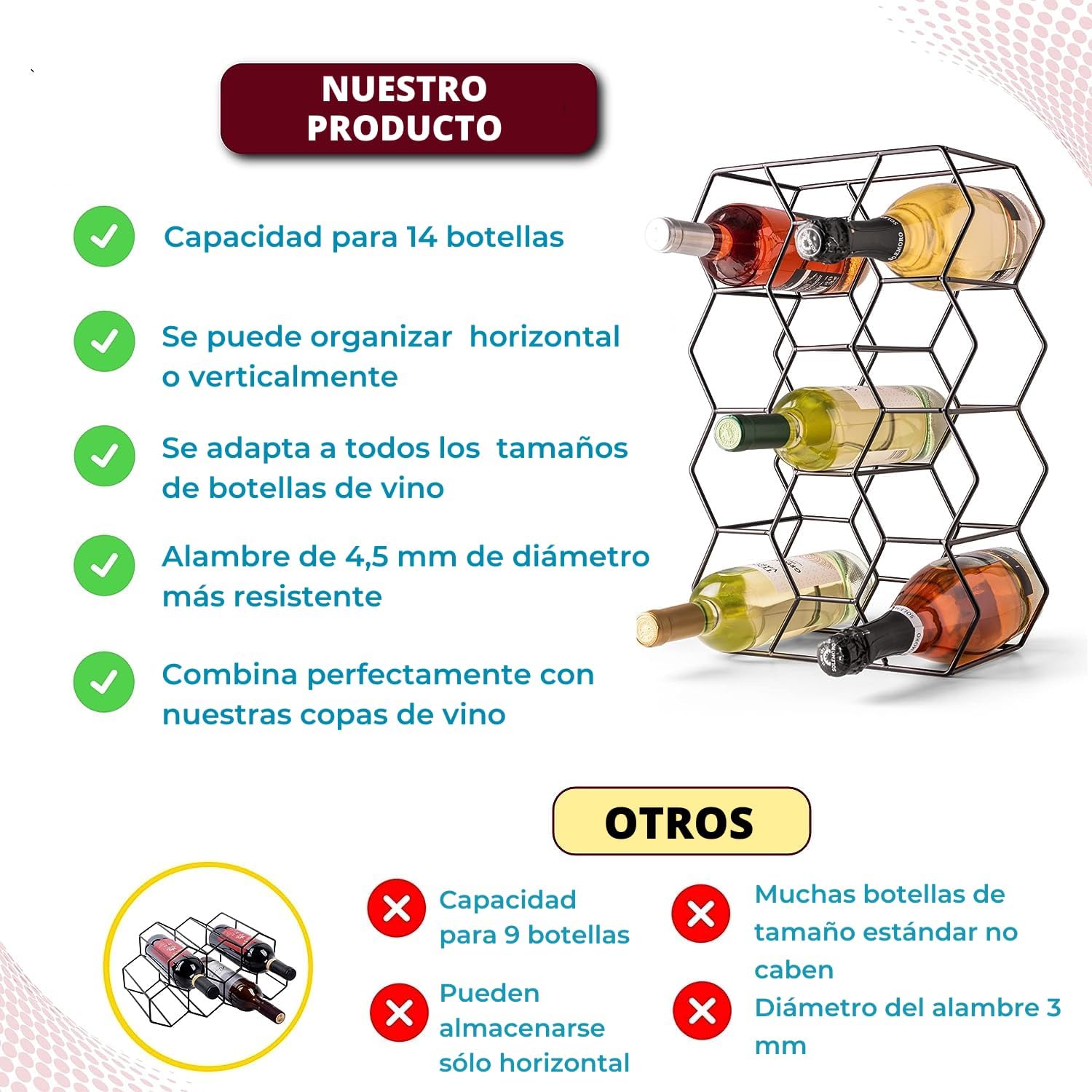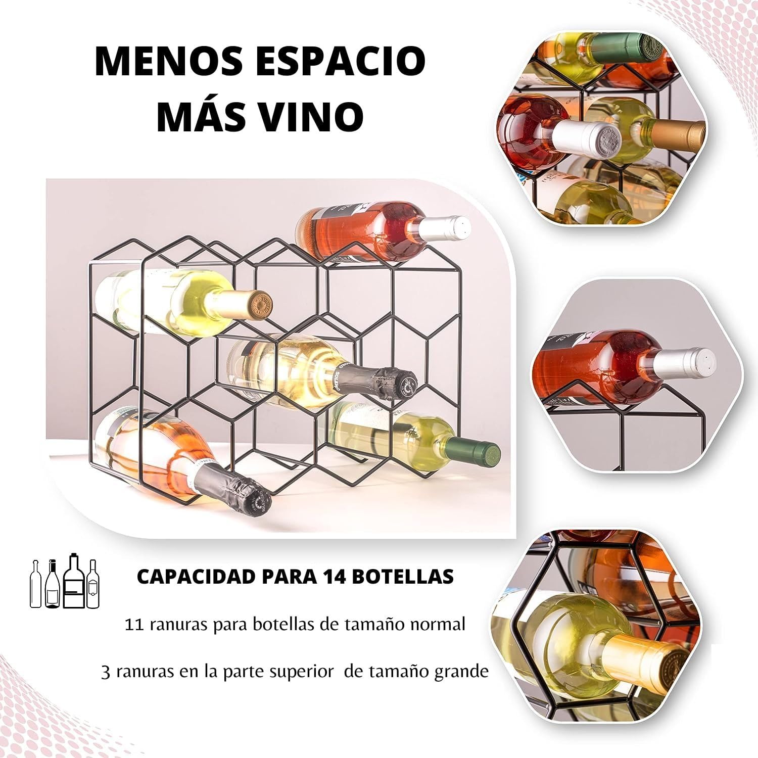 Capacidad y estabilidad: Este estante de vino mide 17.2 x 11.6 x 5.5 pulgadas y ofrece 11 ranuras estándar más 3 adicionales para botellas de gran tamaño. Su construcción sólida asegura que no se tambalee ni se incline, proporcionando un soporte confiable y seguro para tus botellas de vino favoritas. Ideal para exhibir y organizar tu colección con estilo y funcionalidad en cualquier espacio del hogar.