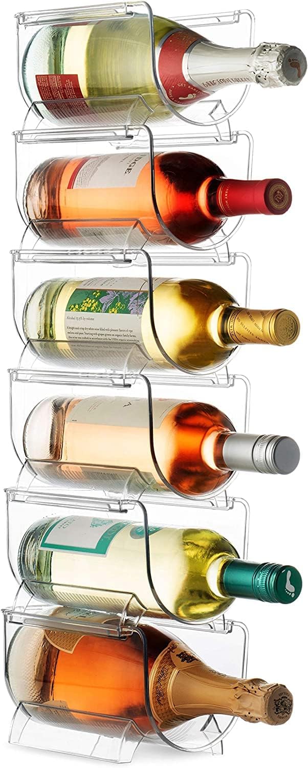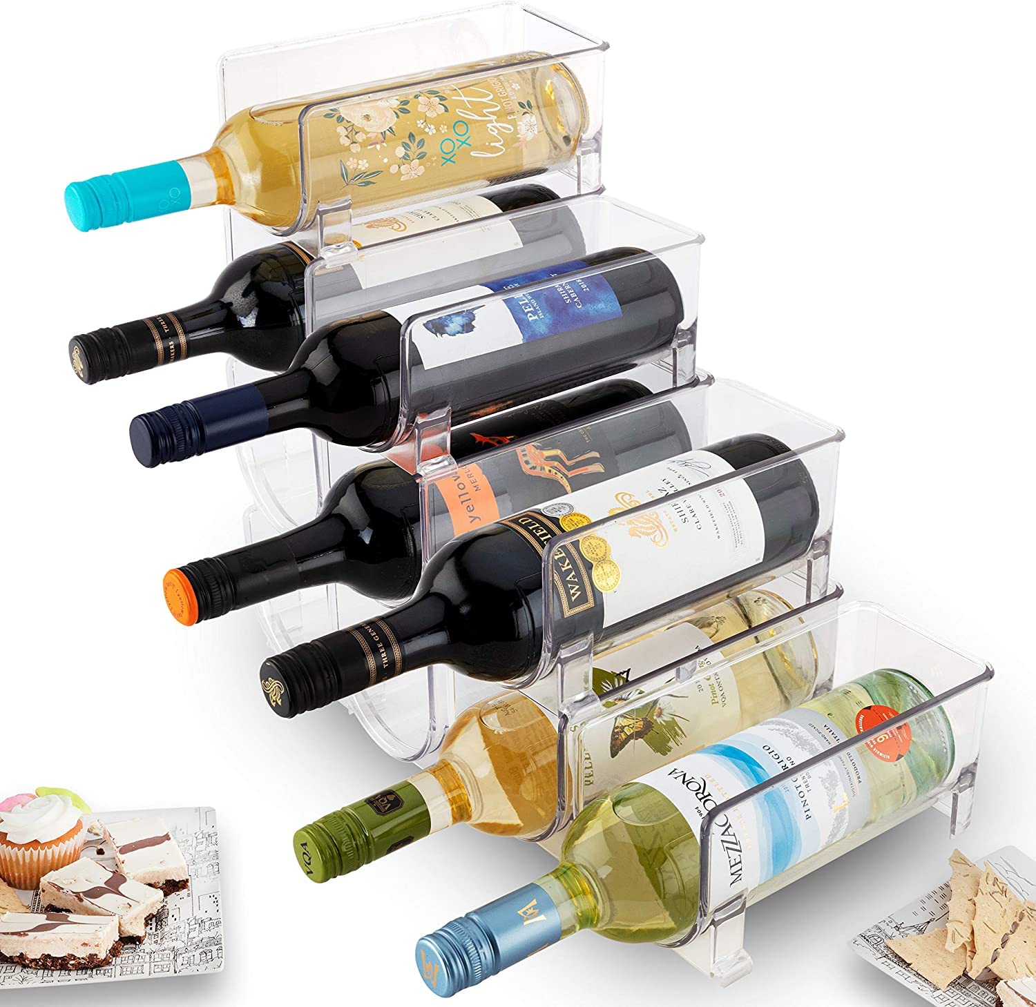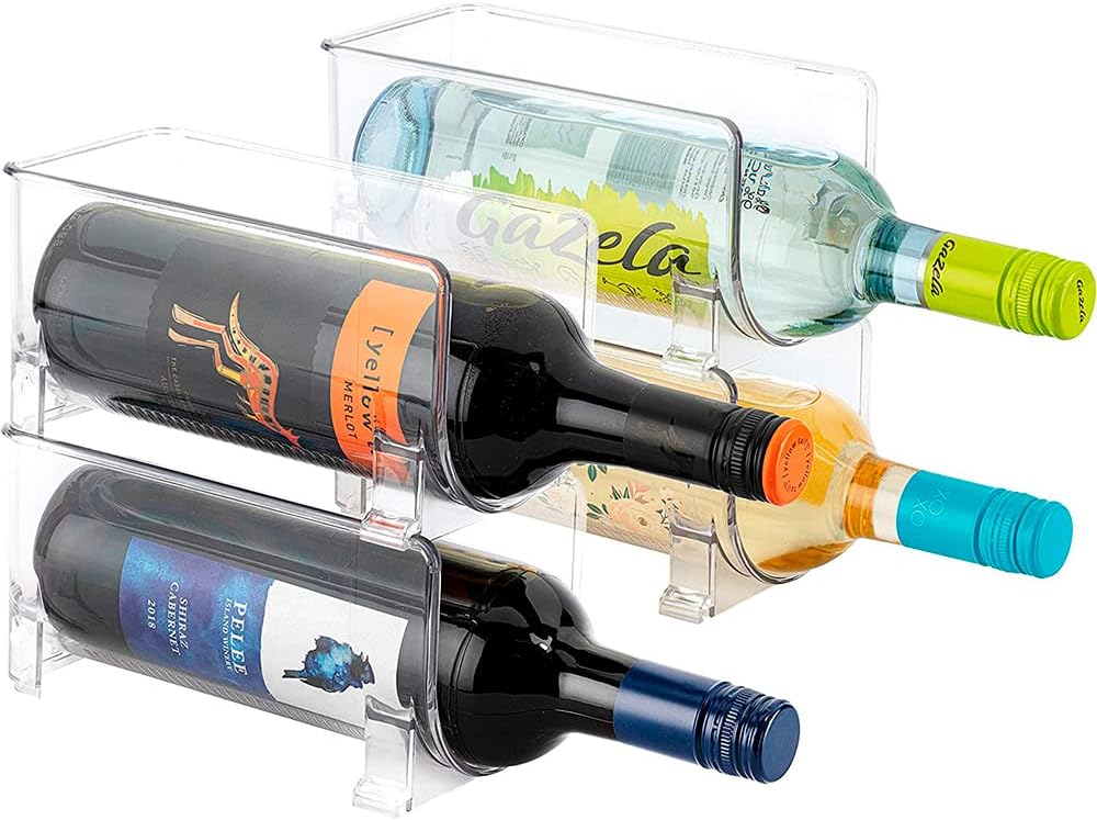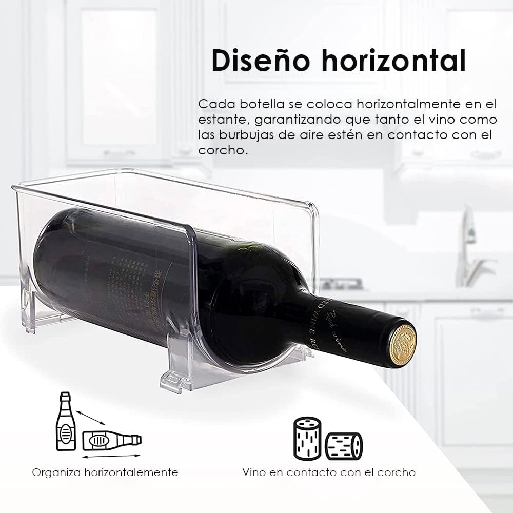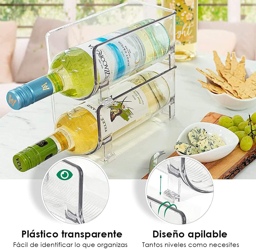 Funcionalidad y resistencia: Fabricados con plástico resistente y libre de BPA, nuestros estantes apilables para botellas ofrecen durabilidad y estilo. Cada estante está diseñado para sostener una botella de vino u otras bebidas embotelladas de manera segura y horizontal, perfecto para encimeras, refrigeradores, mesas y más. Con dimensiones de 8.07 x 3.95 x 4.06 pulgadas, optimizan el espacio sin comprometer la estabilidad.