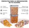 Organización eficiente: Nuestros recipientes de almacenamiento son ideales para una variedad de alimentos como cereales, pasta, arroz y más. Hechos de plástico duradero y libre de BPA, ofrecen una vida útil prolongada y permiten una visibilidad clara de su contenido para un acceso conveniente sin necesidad de abrir cada recipiente. Con un diseño apilable, optimizan el espacio en tu despensa, ya sea grande o pequeña, manteniendo tu cocina organizada y ordenada.