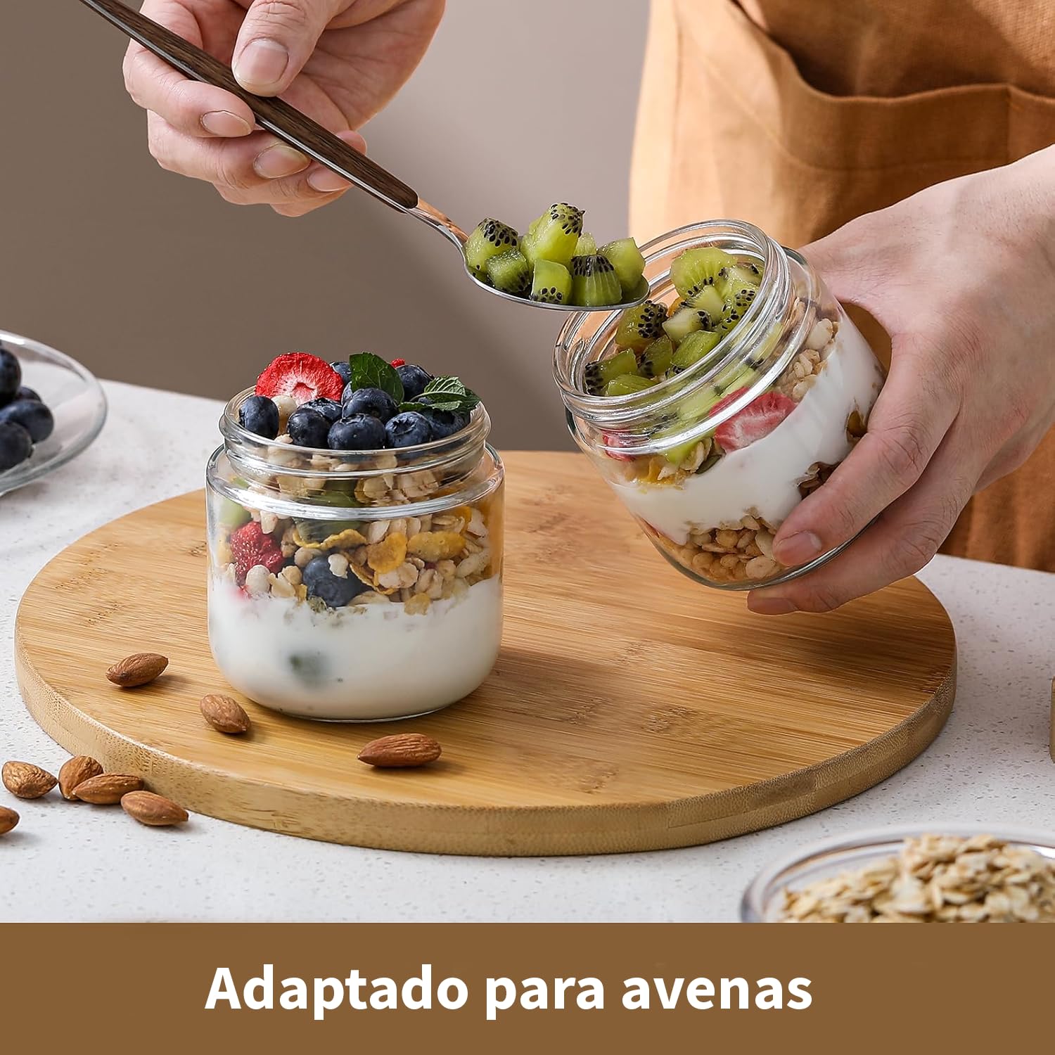 • MULTIUSOS: Estos frascos de vidrio son perfectos para almacenar desde yogur, avena y batidos hasta salsas, mermeladas caseras y encurtidos. También son excelentes para proyectos DIY y decoración, adaptándose perfectamente a múltiples usos.