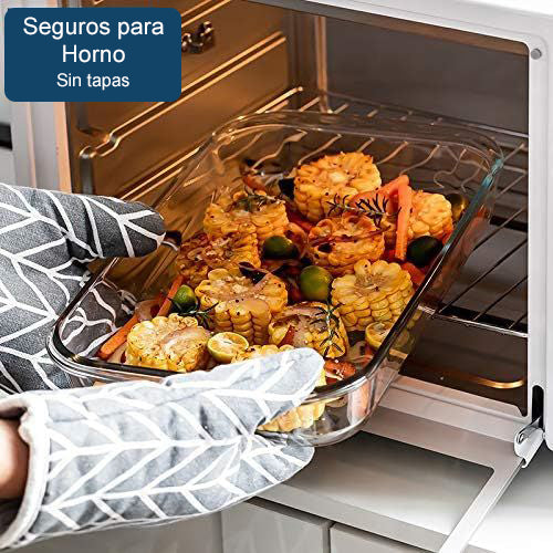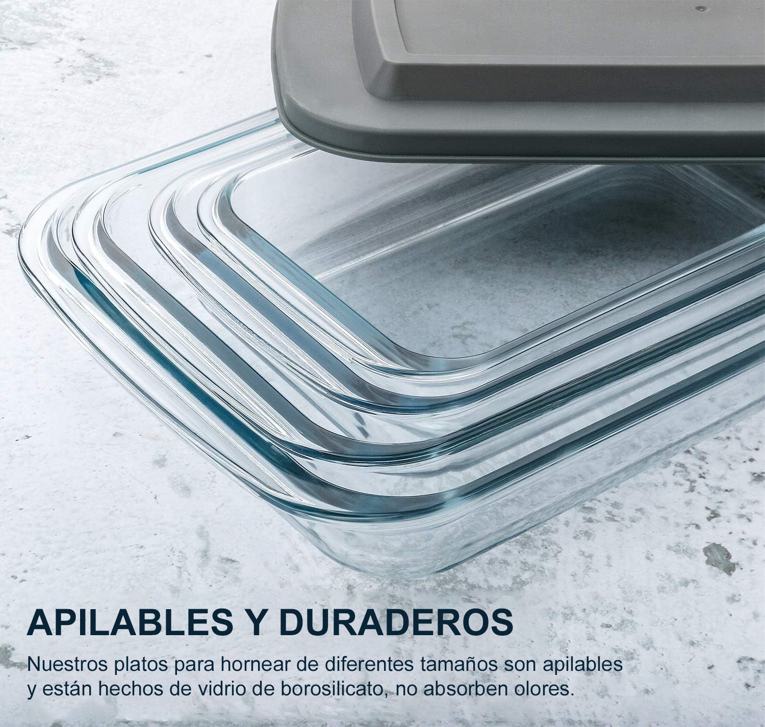 Diseño Funcional y Elegante: Con un diseño elegante y práctico, estos platos para hornear transparentes te permiten controlar el proceso de horneado y servir tus comidas con estilo. Equipados con mangos ampliados y gruesos que son seguros al tacto, facilitan el transporte desde y hacia el horno sin riesgos de quemaduras. Perfectos para una variedad de recetas, desde postres hasta platos principales como lasaña o pollo, estos platos son indispensables en cualquier cocina.