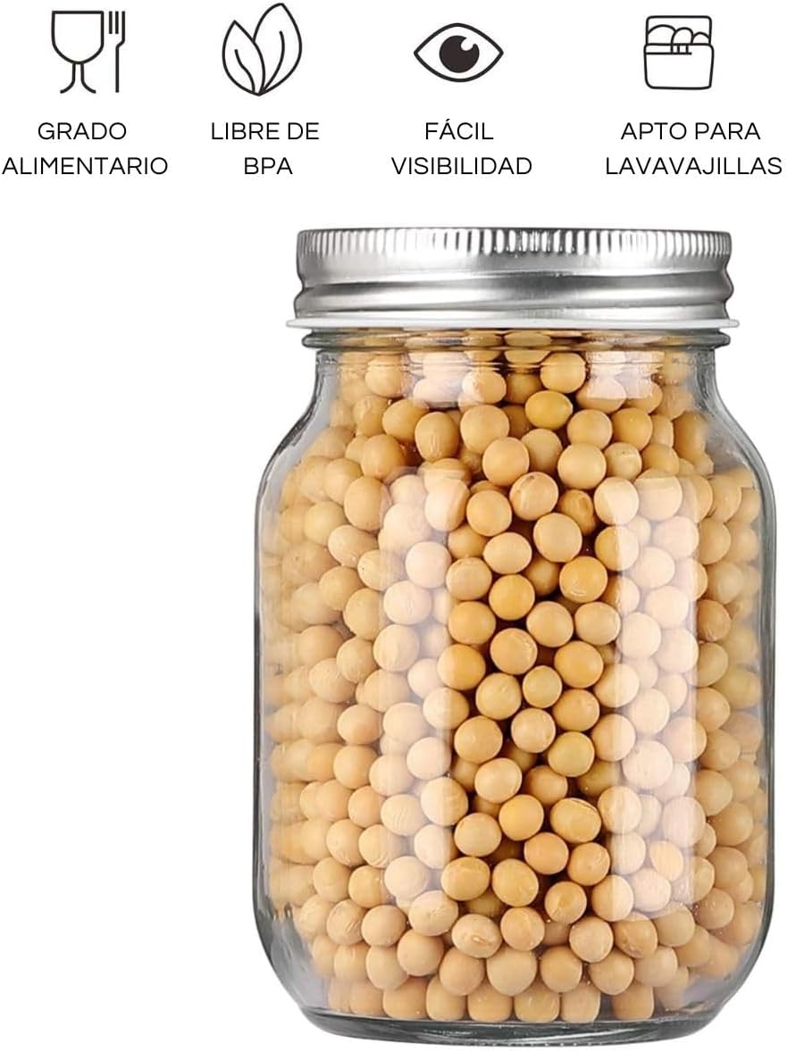 • FÁCIL DE LIMPIAR: Los tarros de vidrio de boca ancha con tapas con una amplia apertura de 2 ¾ pulgadas, estos frascos permiten un fácil acceso a los alimentos y una limpieza sin complicaciones. Hechos de vidrio resistente y aptos para lavavajillas, son una opción práctica y duradera que se adapta a tu rutina diaria de almacenamiento.
