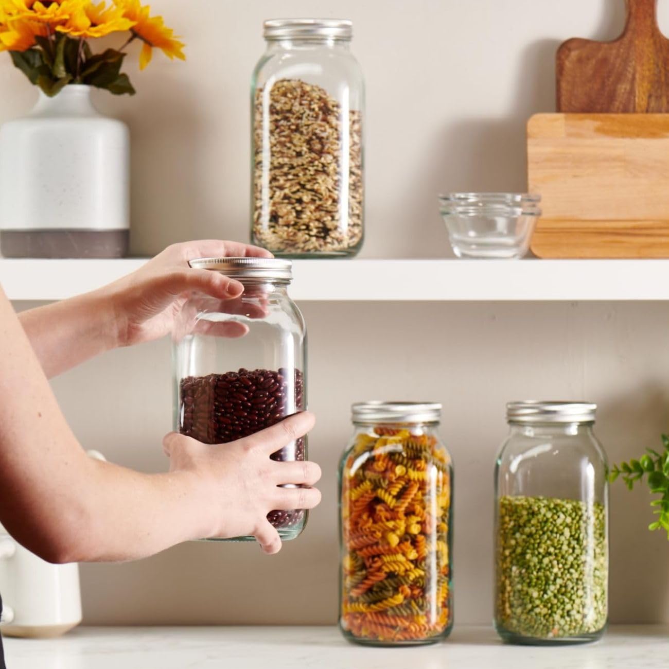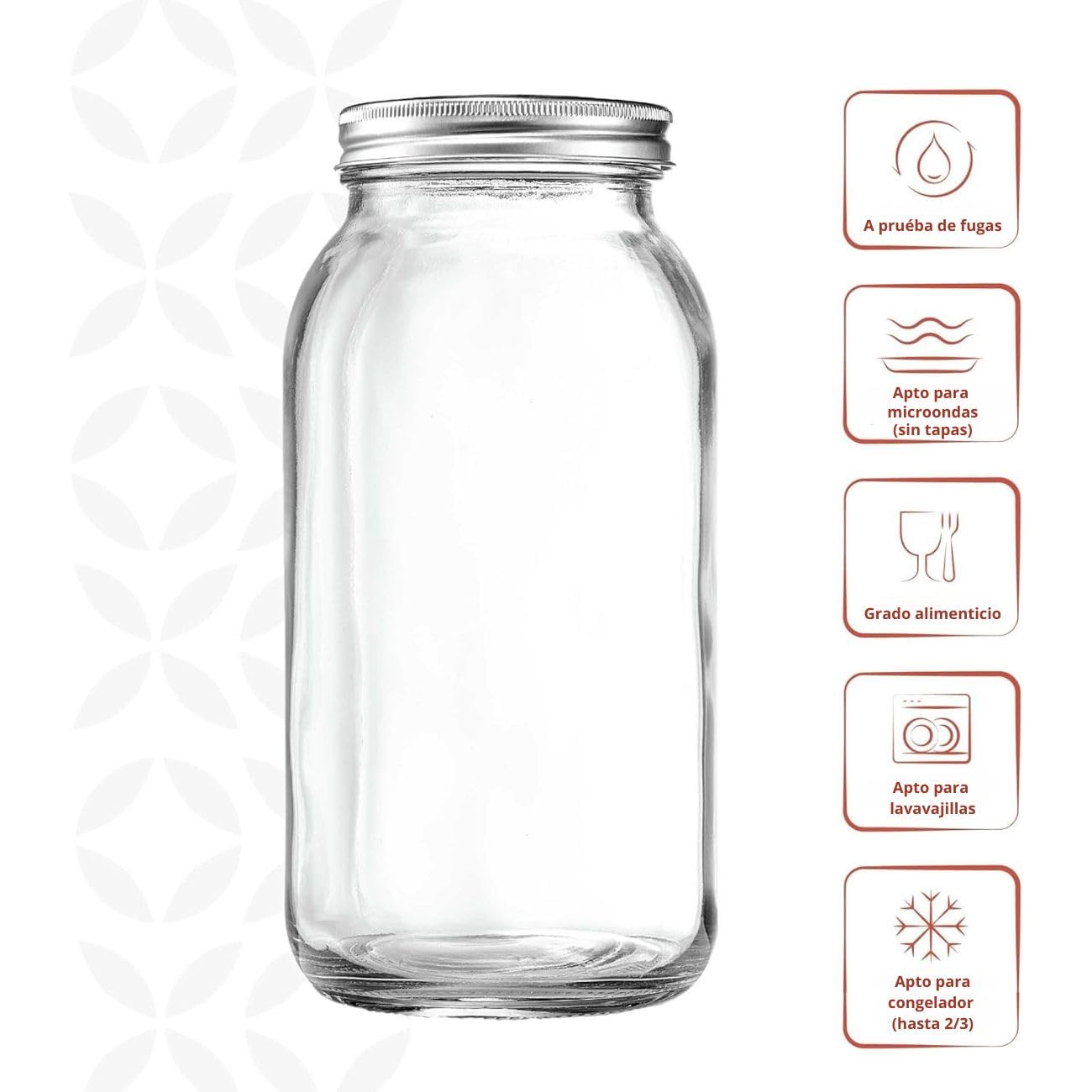 • MULTIUSOS Y SEGURO: Estos frascos herméticos de vidrio incluye 3 frascos de vidrio de 1.89 L con tapas metálicas herméticas, ideales para almacenar alimentos secos, frutas, encurtidos, salsas y más. Perfectos para uso diario o preparación de comidas.
