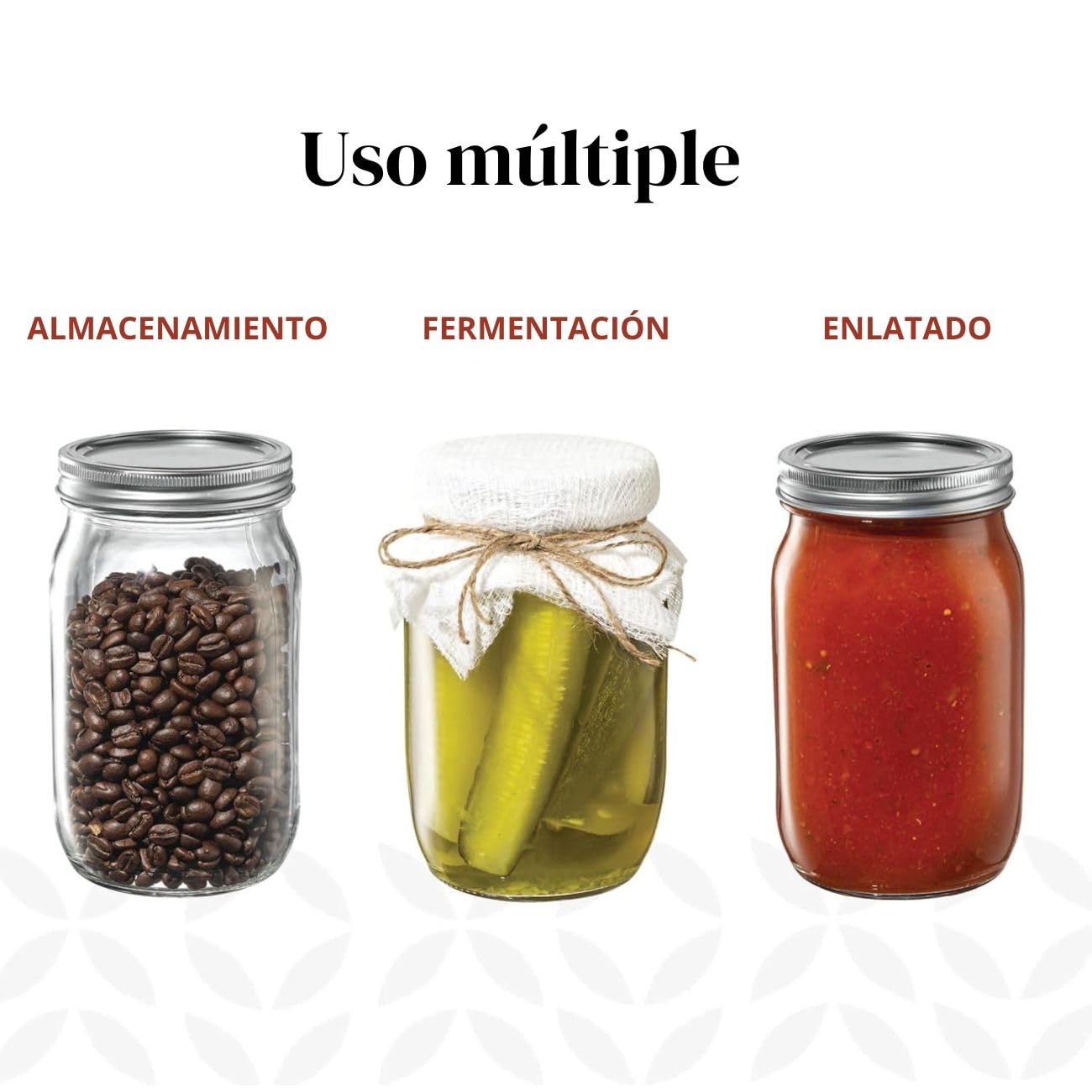 • PRÁCTICO Y ÚTIL: Los tarros de vidrio para conservas las tapas roscadas aseguran un cierre firme que mantiene la frescura y evita derrames. Ideales para conservar sabores y proteger los alimentos durante el almacenamiento.