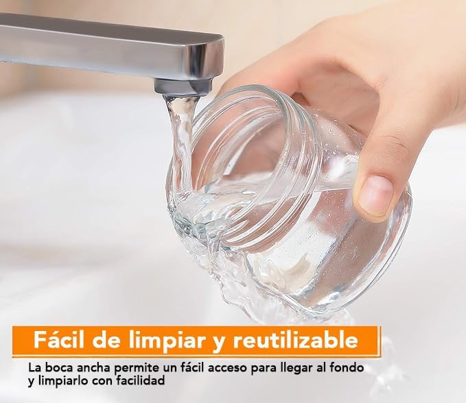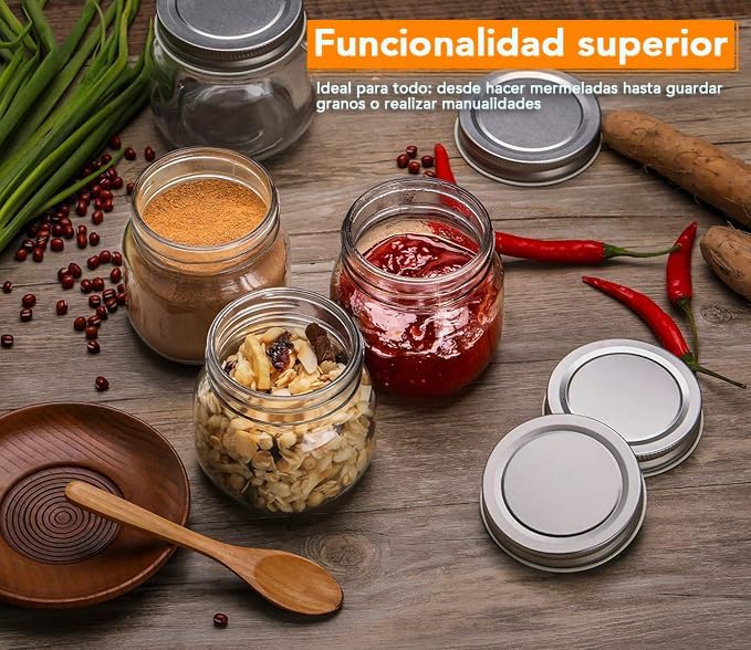 • MULTIUSOS Y FÁCIL DE USAR: Estos tarros de vidrio de 240 ml son útiles para enlatar, almacenar y decorar. Con una abertura de 6.35 cm, facilitan el llenado y la limpieza. Son perfectos para proyectos de bricolaje y manualidades.