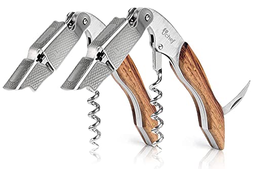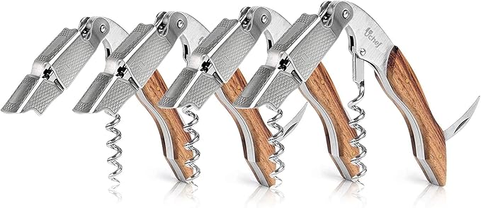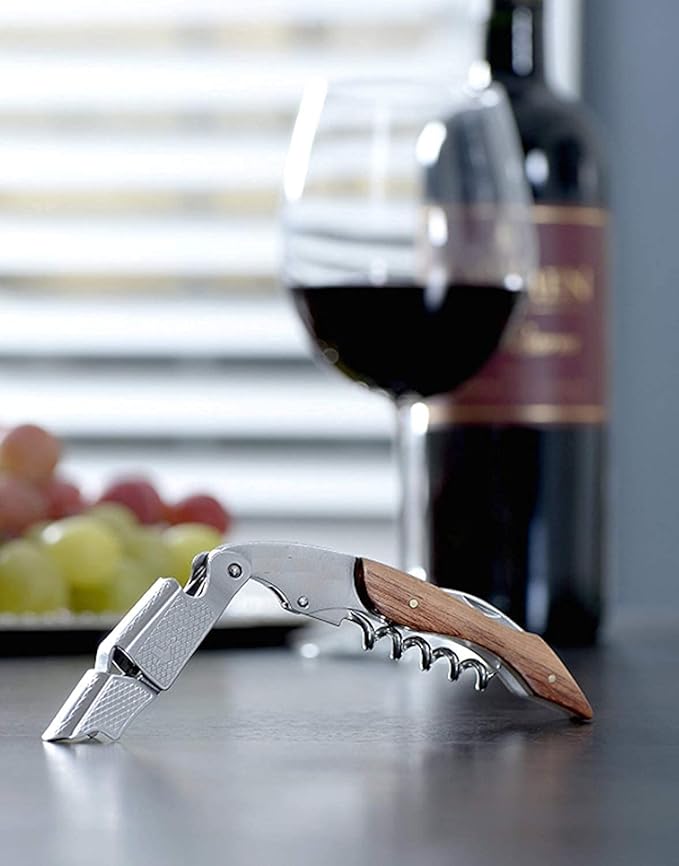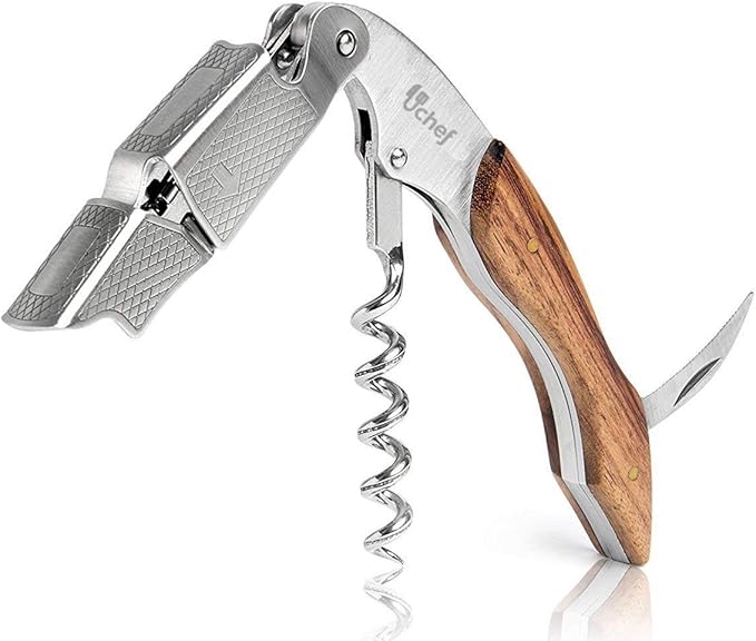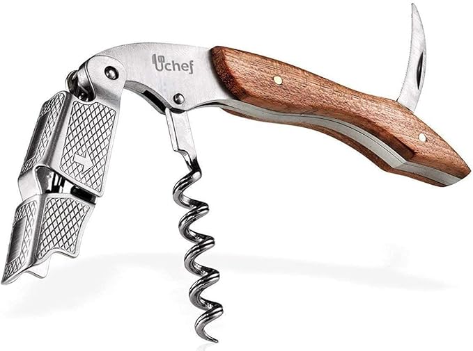 Elegancia y Durabilidad: El sacacorchos de madera de U Chef destaca por su diseño estético y materiales de alta calidad. Fabricado con cuerpo de acero inoxidable y mango de madera, ofrece no solo un aspecto elegante, sino también una durabilidad excepcional. Ideal para cualquier entusiasta del vino, combina las funciones de sacacorchos, abrebotellas y cortador de papel aluminio en un solo artículo, asegurando una experiencia completa y sin complicaciones.