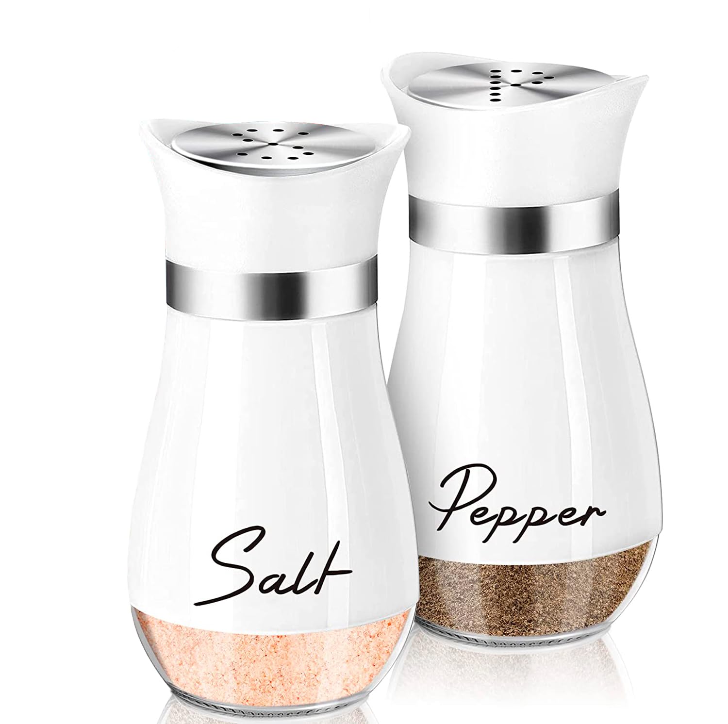 Saleros y Pimenteros de Vidrio y Acero Inoxidable (Blanco)