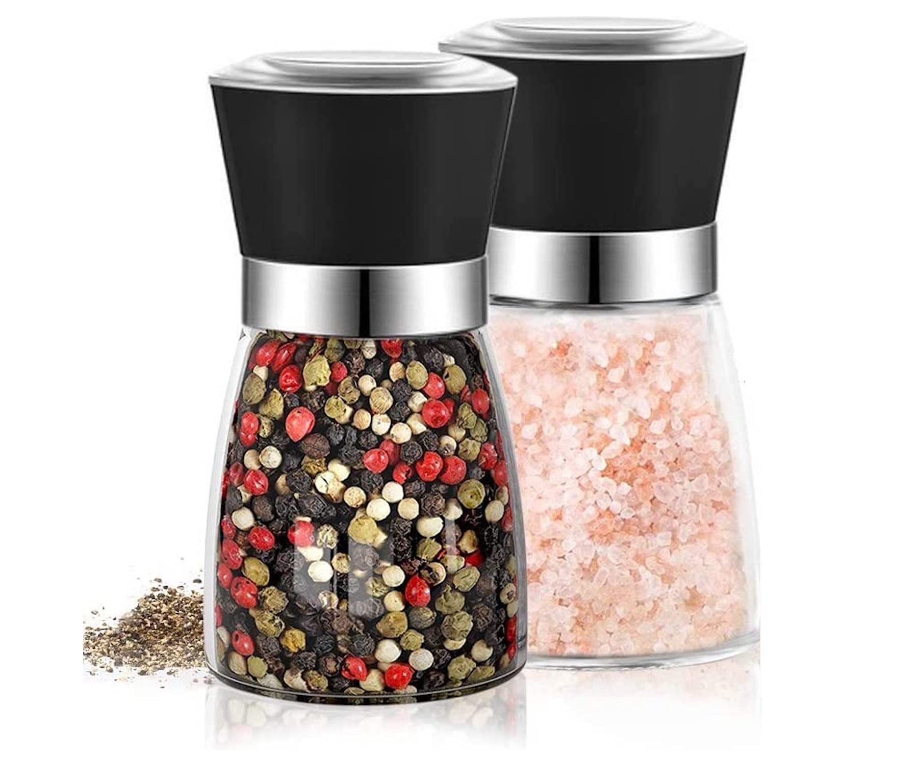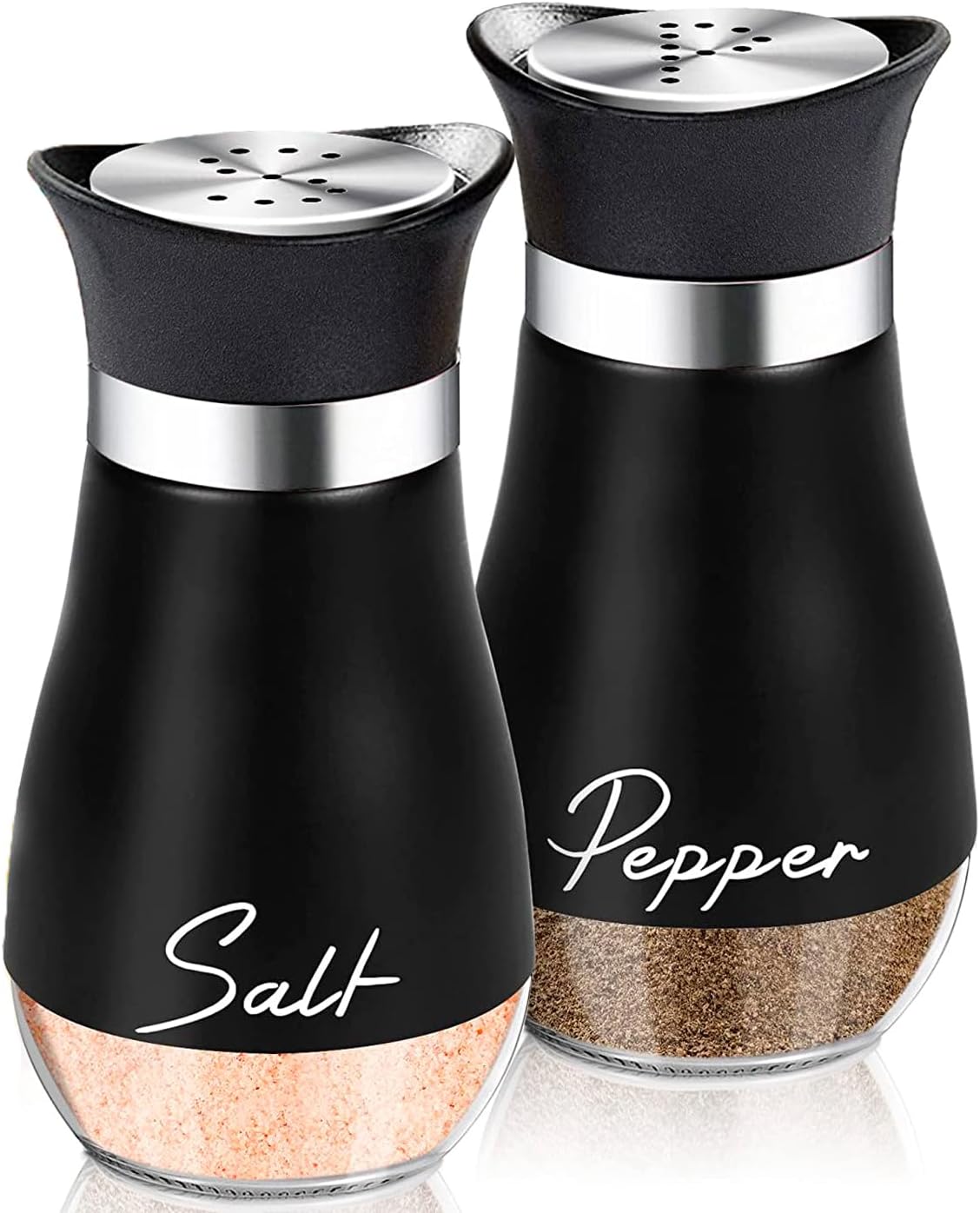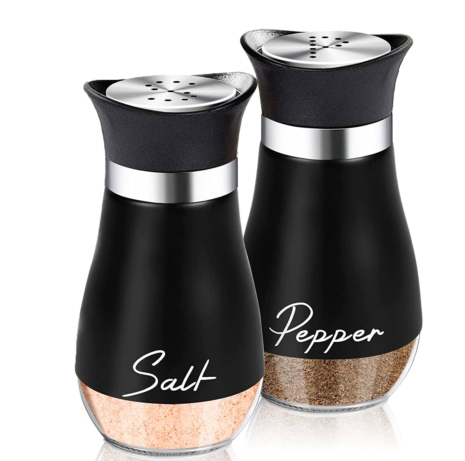 Saleros y Pimenteros de Vidrio y Acero Inoxidable(Negro)