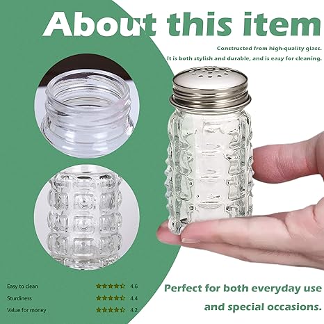 • MATERIAL DE CALIDAD: Los saleros de mesa están fabricados con vidrio de alta calidad, estas cocteleras son resistentes y transparentes, lo que permite ver el contenido fácilmente y evitar confusiones al condimentar tus platillos.
