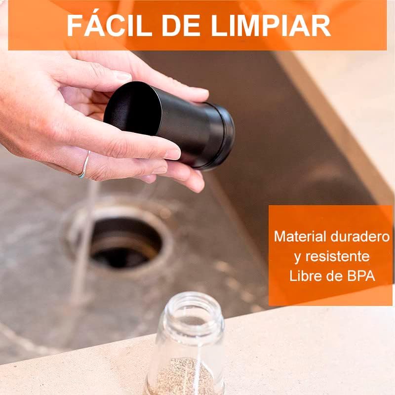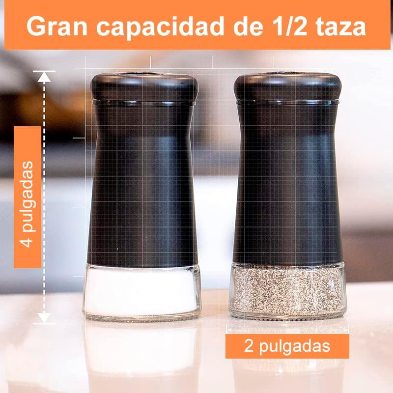 Diseño Práctico y Duradero: Con capacidad para 1/2 taza de especias, estos saleros son ideales para reducir la necesidad de recargas frecuentes sin ocupar mucho espacio en la cocina. El cristal transparente te permite ver cuándo es el momento de rellenar, mientras que la parte superior de acero inoxidable se desenrosca fácilmente para recargar sin problemas ni derrames, facilitando así la limpieza y el mantenimiento.