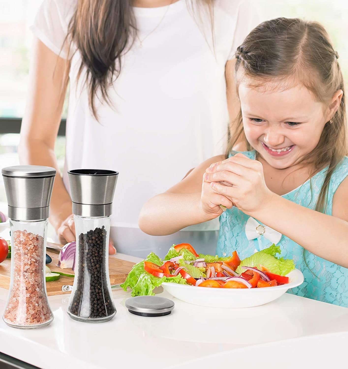 • Fácil de rellenar: los molinillos pueden contener hasta 3/4 de taza o 6 oz de sal, pimienta o la especia de su elección. Para rellenarlos, simplemente desenrosque el molinillo de la botella.