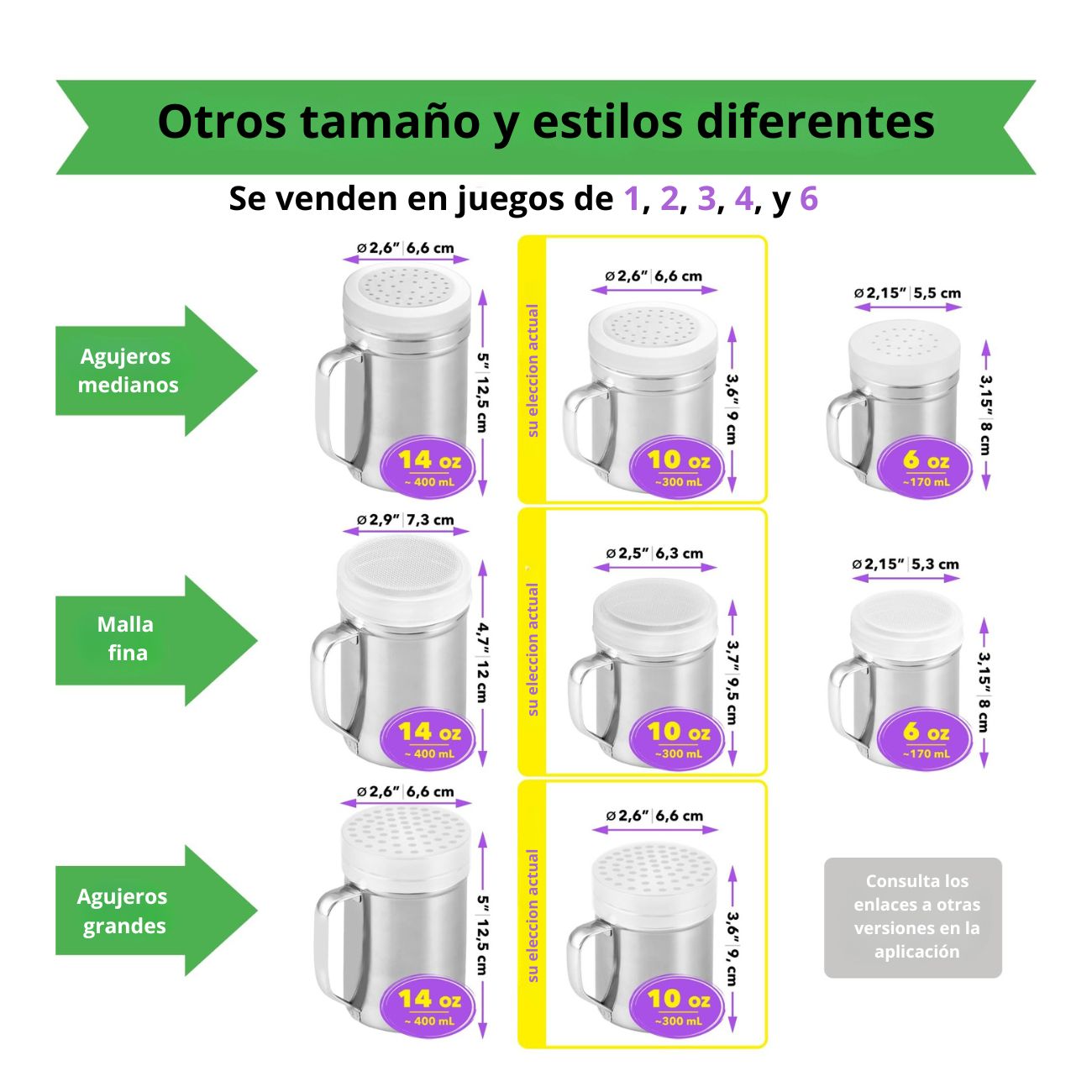 • USO MULTIFUNCIONAL EN COCINA Y MESA: Su estilo clásico y funcional los hace ideales para diversas aplicaciones. Úsalos en la cocina para tus preparaciones culinarias o como tamizador para hornear, y llévalos a la mesa para que tus invitados condimenten a su gusto. También funcionan como recipiente para sal en el mostrador.