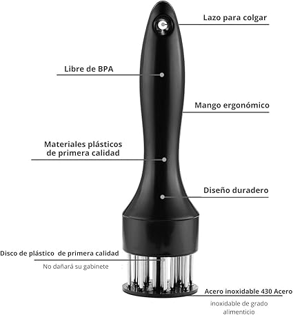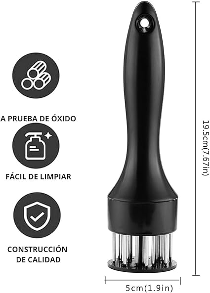 • VERSÁTIL Y PRÁCTICO: Funciona perfectamente en carnes como res, pollo, cerdo y ternera, haciéndolo ideal tanto para cocineros caseros como chefs profesionales. Su diseño compacto lo hace fácil de almacenar, ocupando poco espacio en la cocina.