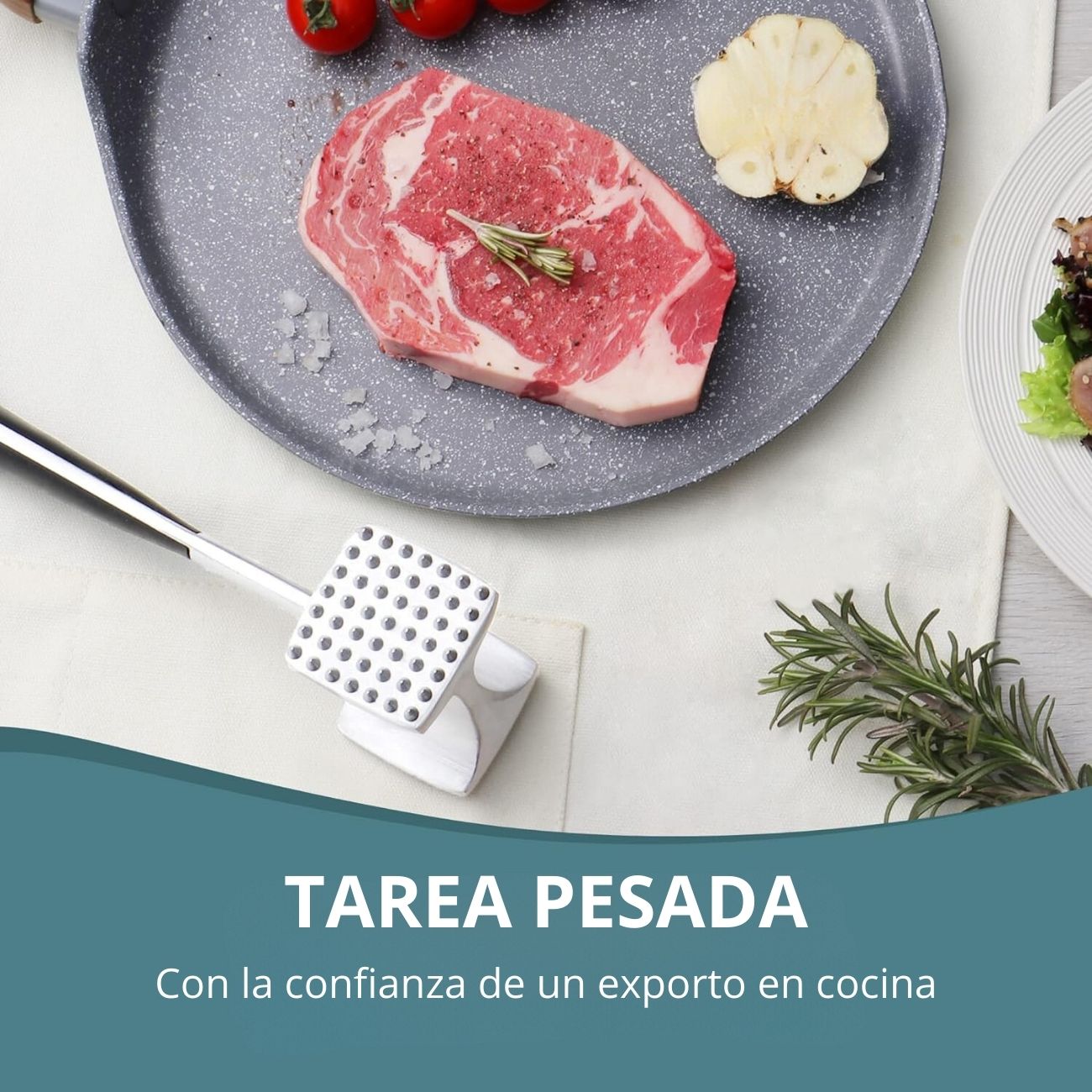 • DISEÑO MODERNO: El martillo para carne con un mango cómodo que se ajuste perfectamente a tu mano. Este martillo de carne permite que el mazo y la gravedad hagan todo el trabajo en menos tiempo. ¡Disfruta de tu tiempo de cocina!.