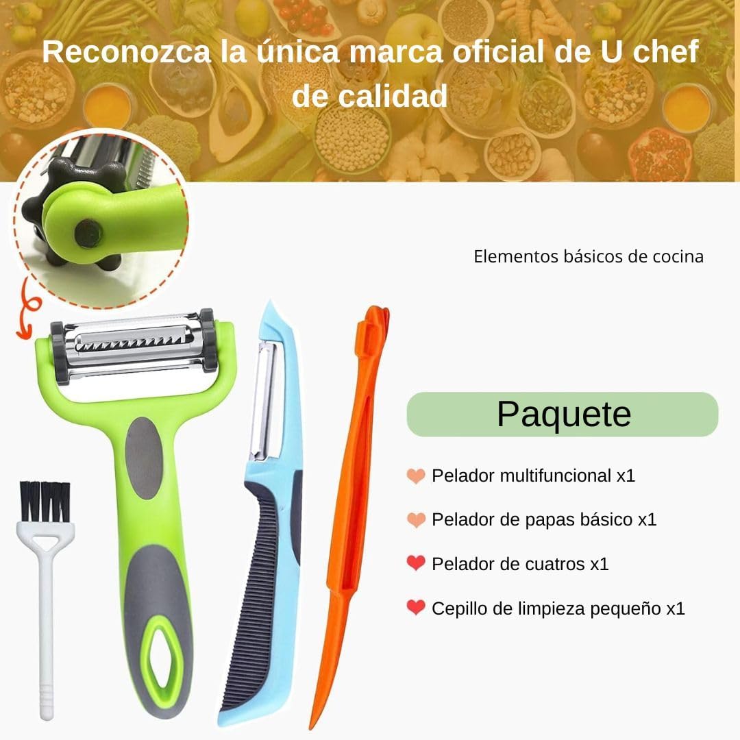 • PELAPAPAS: Equipado con una cuchilla flexible y un removedor de ojos de patatas, este pelador permite un pelado eficiente y la eliminación de imperfecciones de las papas.