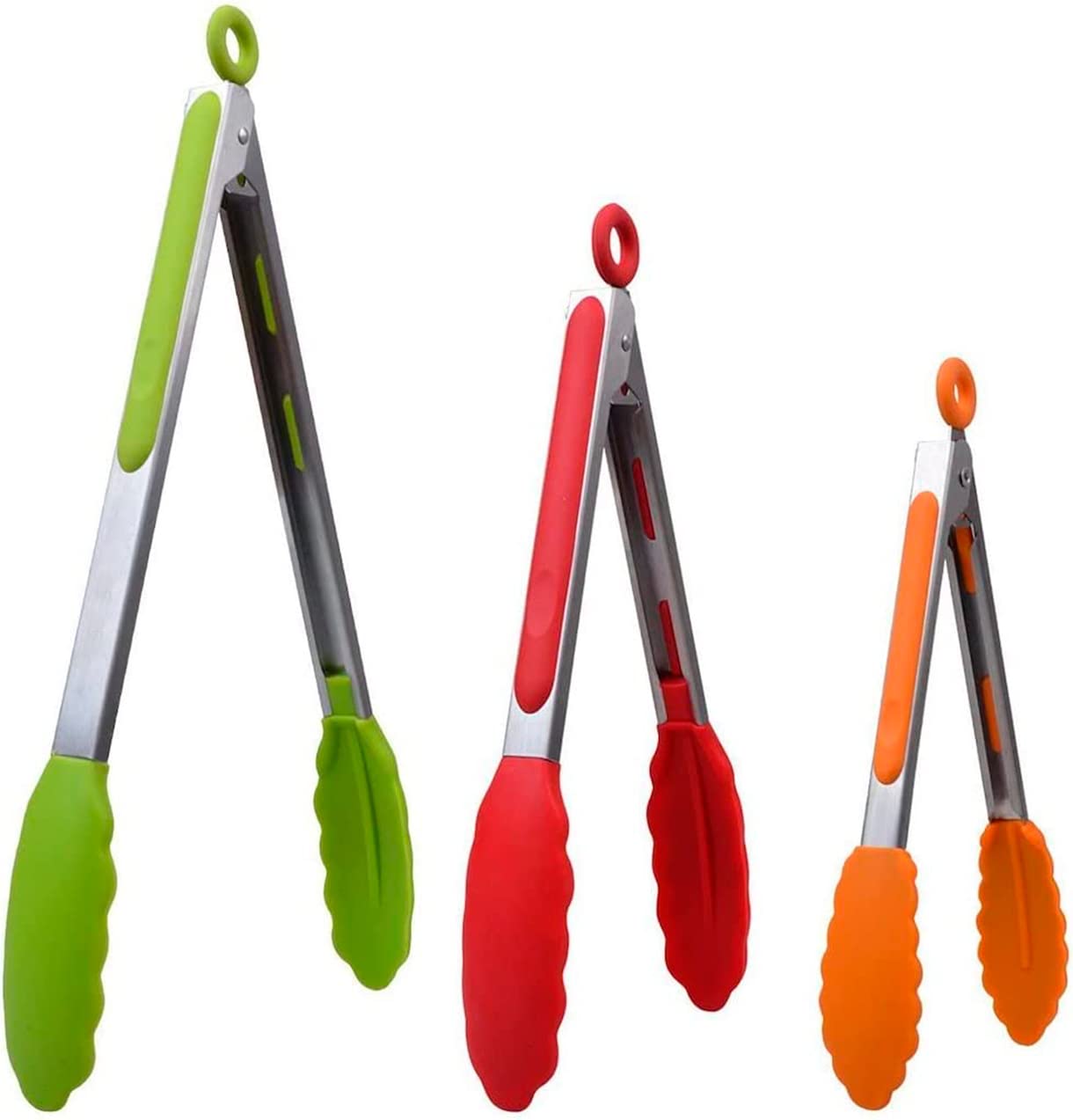 3 Pinzas de Cocina, Puntas de Silicona (3-7", 9" y 12" ) (Multicolor)