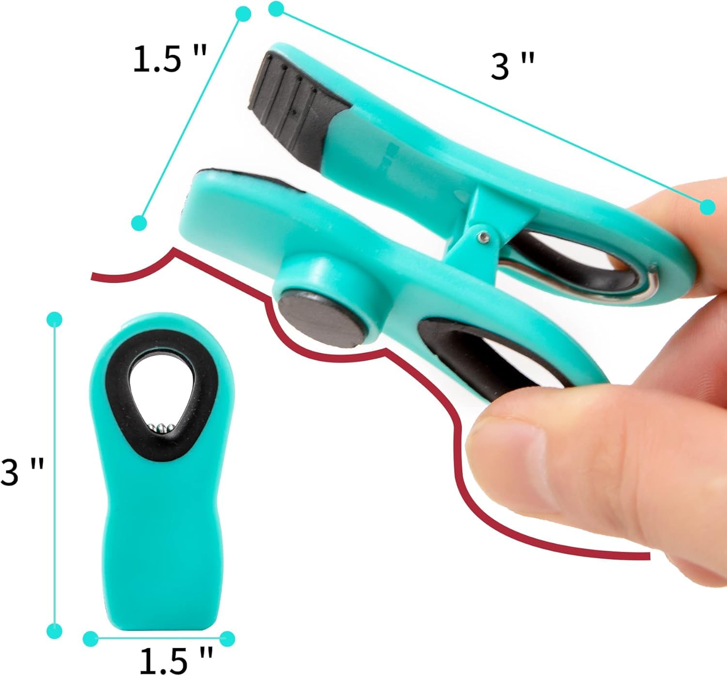 • MULTIUSOS: Las pinzas para bolsas de comida con su diseño de imán de una sola garra, puedes adherirlos al refrigerador o superficies metálicas para colgar notas, fotos, recetas o listas de compras de forma práctica.