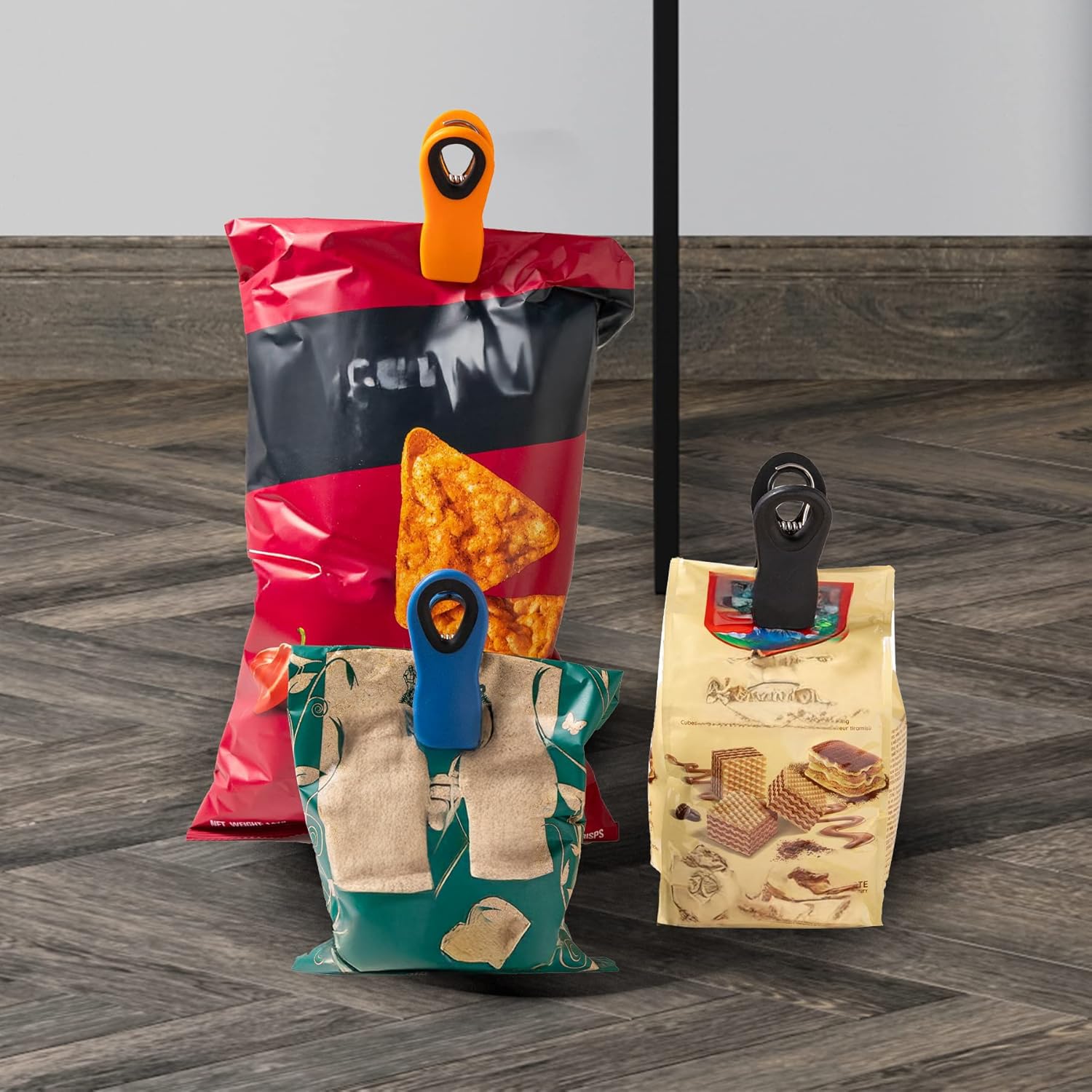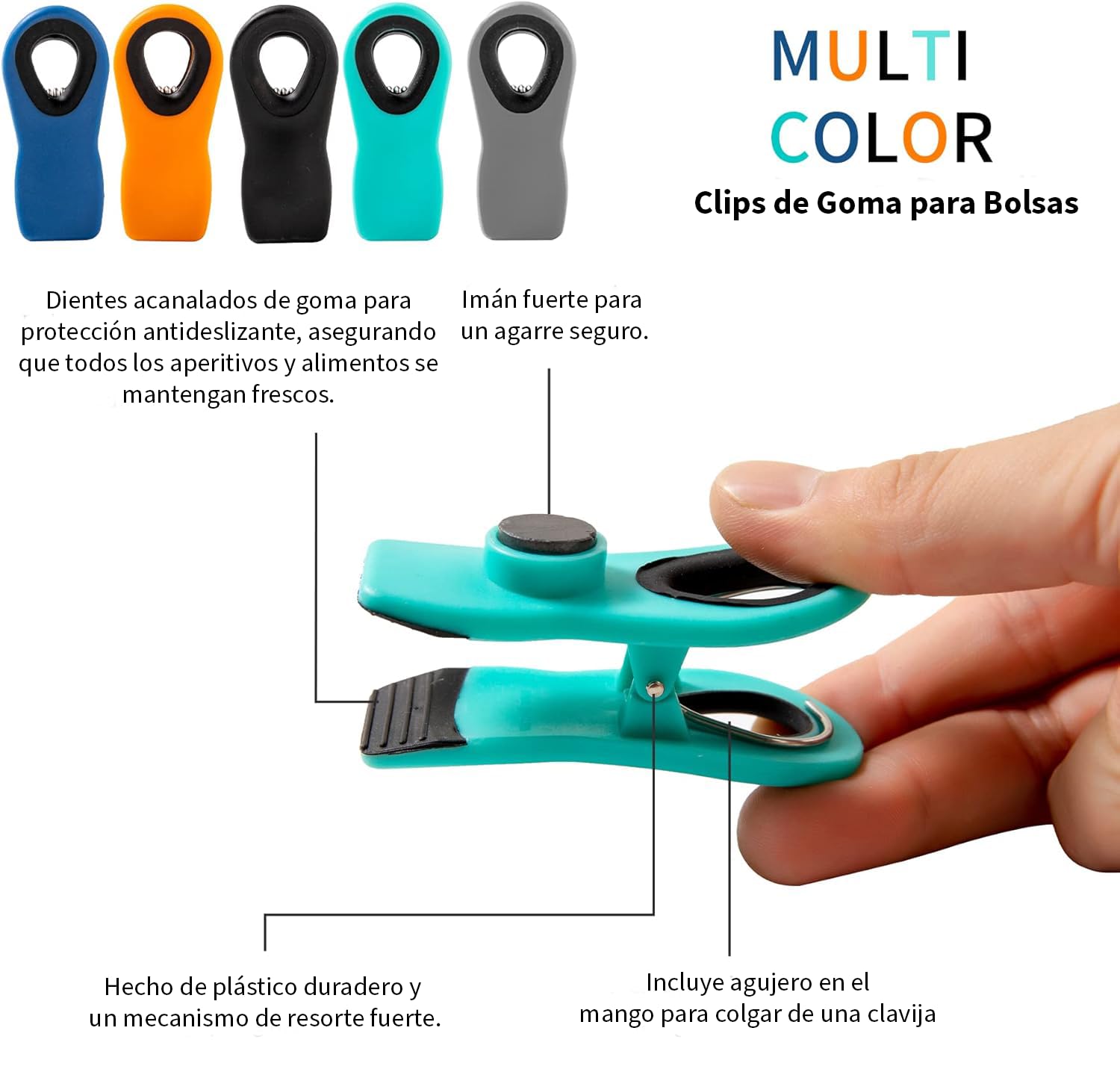 • CIERRE SEGURO Y HERMÉTICO: Cada clip de plástico para bolsas cuenta con una boca de silicona texturizada que mantiene bolsas de comida, snacks y cereales bien cerradas, evitando fugas de aire y manteniendo los alimentos frescos.