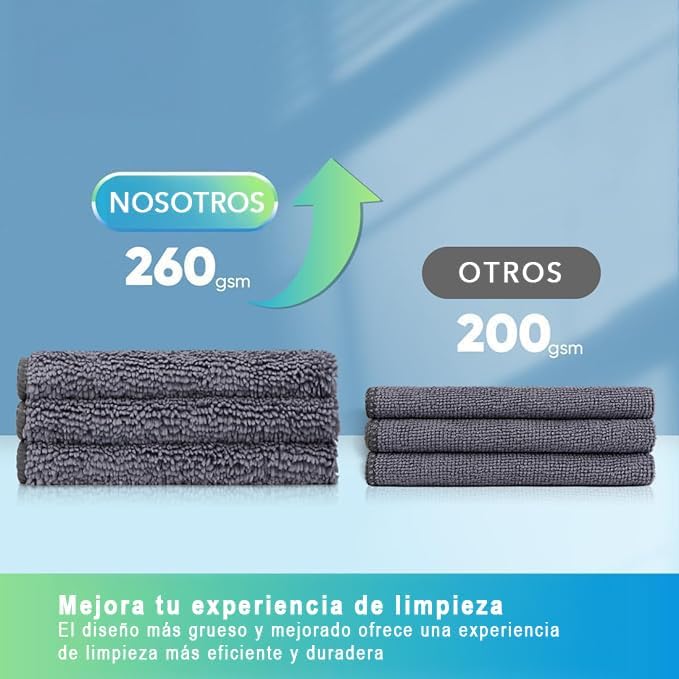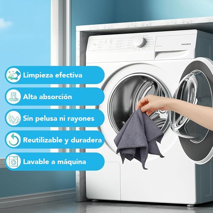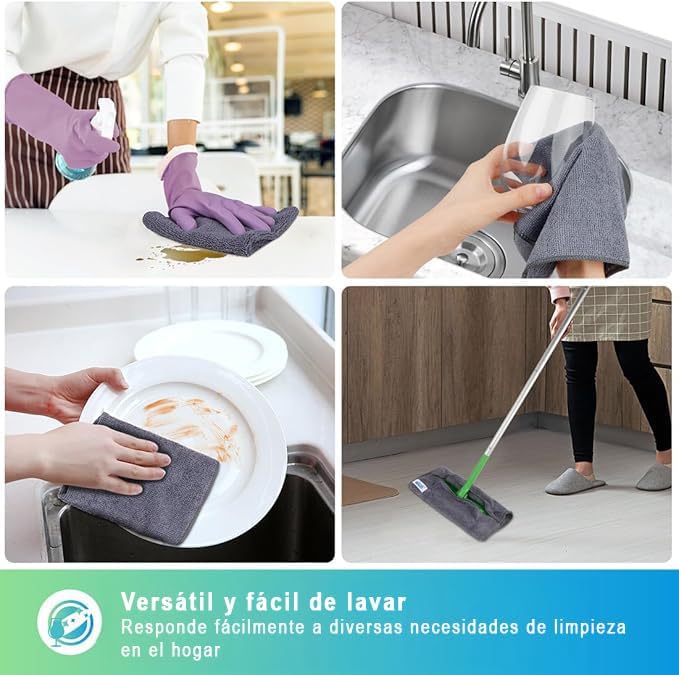 • VERSÁTILES, DURADEROS Y REUTILIZABLES: Usa estas toallas de limpieza y trapos de microfibra como multiusos en todas tus tareas de limpieza hogar. Son muy duraderos, con bordes reforzados para resistir cientos de lavados, lo que los convierte en una opción reutilizable y ecológica que reduce el uso de papel desechable.