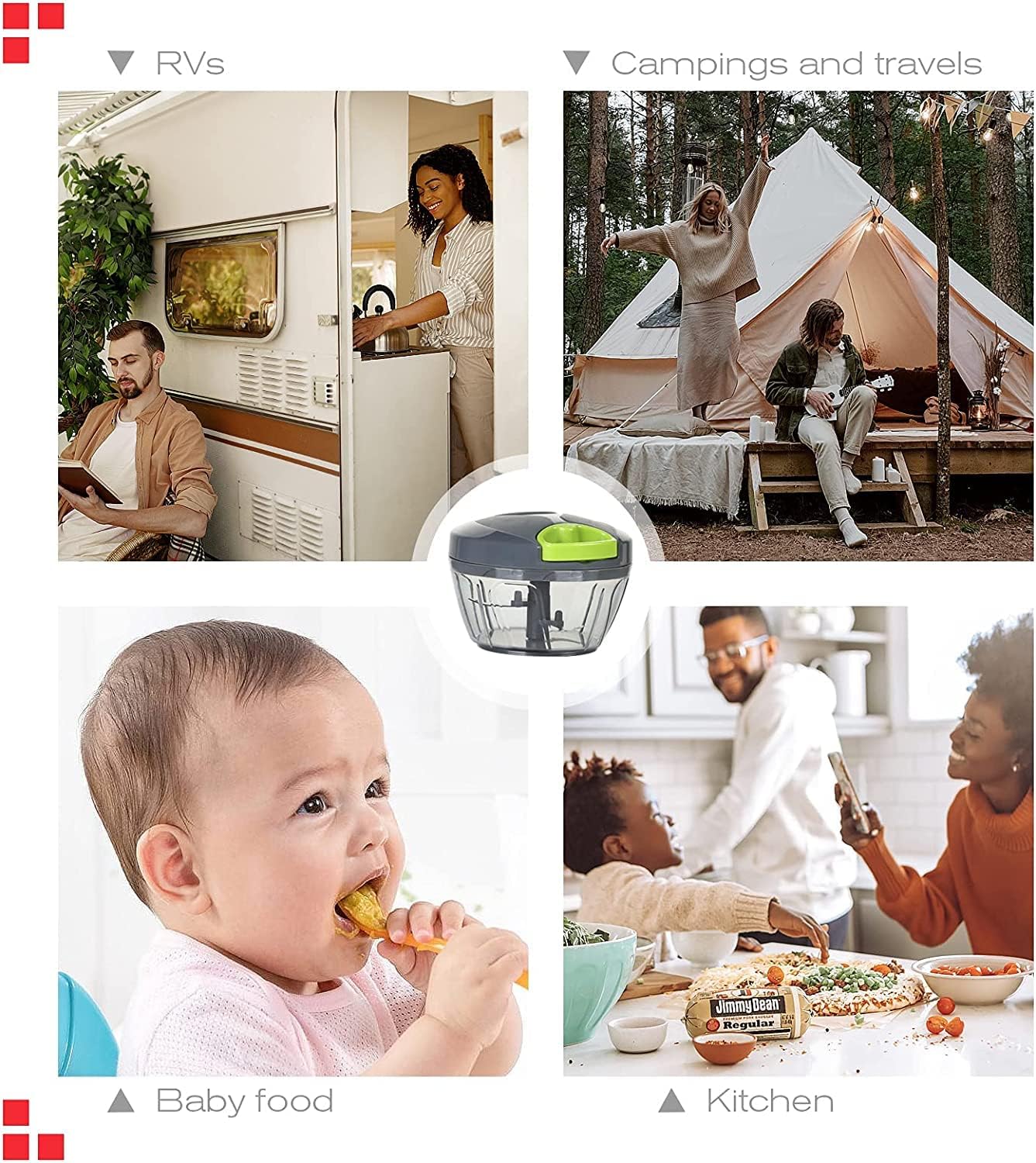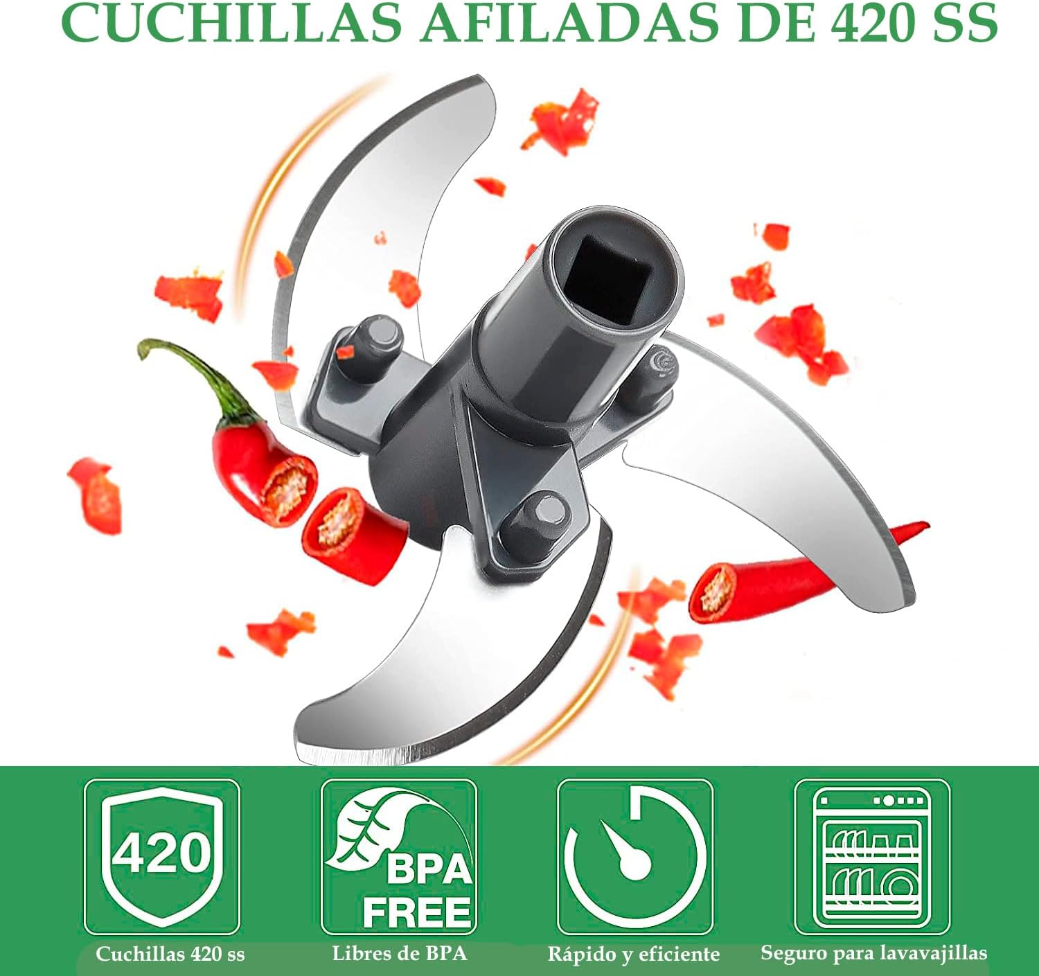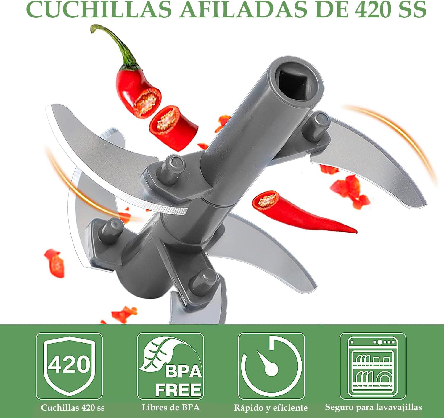 Versatilidad y Durabilidad: Este picador de verduras es ideal para cocinas pequeñas, casas rodantes, viajes y campamentos, gracias a su diseño compacto y funcionamiento sin electricidad. Las cuchillas de acero inoxidable 420, dispuestas en diferentes direcciones y alturas, garantizan un corte uniforme de todos los alimentos sin doblarse ni oxidarse. Con capacidad para satisfacer las necesidades de la mayoría de las familias, este dispositivo es versátil y seguro de usar en cualquier entorno culinario.